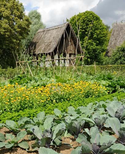 Die Gärten und Äcker im LWL-Freilichtmuseum Detmold sind nach historischen Vorbildern angelegt und beherbergen viele alte Pflanzensorten (hier: Garten des Lippischen Meierhofs).