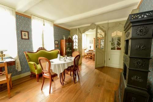 Esszimmer und Wohnstube einer wohlhabenden Kaufmannsfamilie um 1860 im „Haus Stahl“, ursprünglich aus Gütersloh.