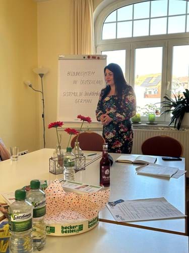 Adriana Lungu, Elternmoderatorin, heißt rumänische Eltern zu einer Veranstaltung im Kreisfamilienzentrum Haus der Familie Stadt Versmold willkommen.