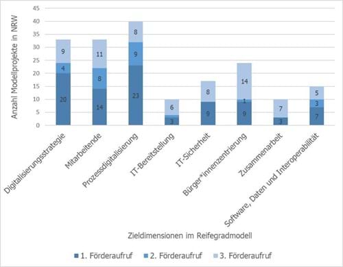 Im Rahmen des ersten und zweiten Förderaufrufs werden von den Gesundheitsämtern überwiegend Modellprojekte umgesetzt, die eine Verbesserung des Digitalisierungsgrades in den Handlungsfeldern Prozessdigitalisierung, Digitalisierungsstrategie und Mitarbeitende realisieren sollen.